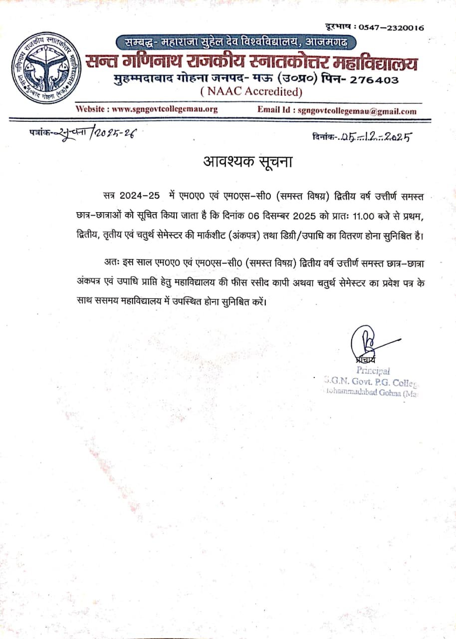 उत्तर प्रदेश शासन द्वारा पूर्व के ब्रिटिशकालीन क्विंश कालेज तथा म्योर कालेज के सादृश्य आदर्श महाविद्यालय की कल्पना को मूर्त स्वरूप प्रदान करने के लिए इस राजकीय महाविद्यालय की स्थापना की गई | इस महाविद्यालय की स्थापना १९ नवंबर १९७९ में हुई | तमसा नदी के किनारे महर्षि देवल की तपोभूमि पर प्रकृति प्रेम के एवं रमणीय वातावरण में स्थित इस महाविद्यालय की स्थापना का श्रेय स्व . श्री रामनरेश यादव जी पूर्व मुख्यमंत्री उ० प्र ० शासन लखनऊ की असीम विद्यानुराग एवं शैक्षिक मनोवृत्त तथा स्व . श्री राजाराम गुप्त पूर्व अध्यक्ष नगर पंचायत मुहम्मदाबाद गोहना मऊ को जाता है |...Read more