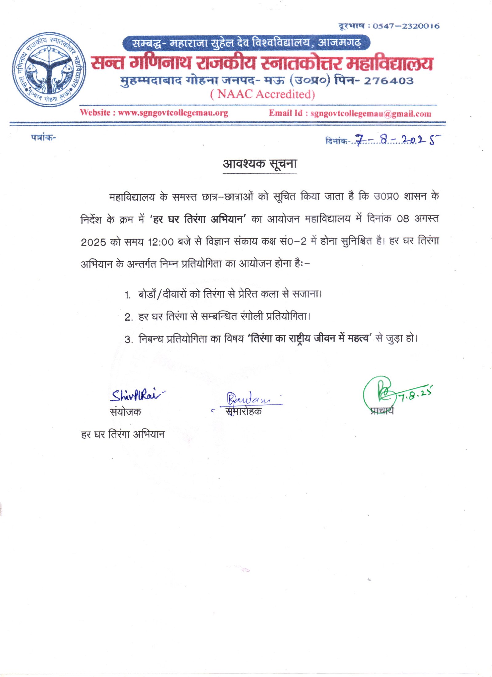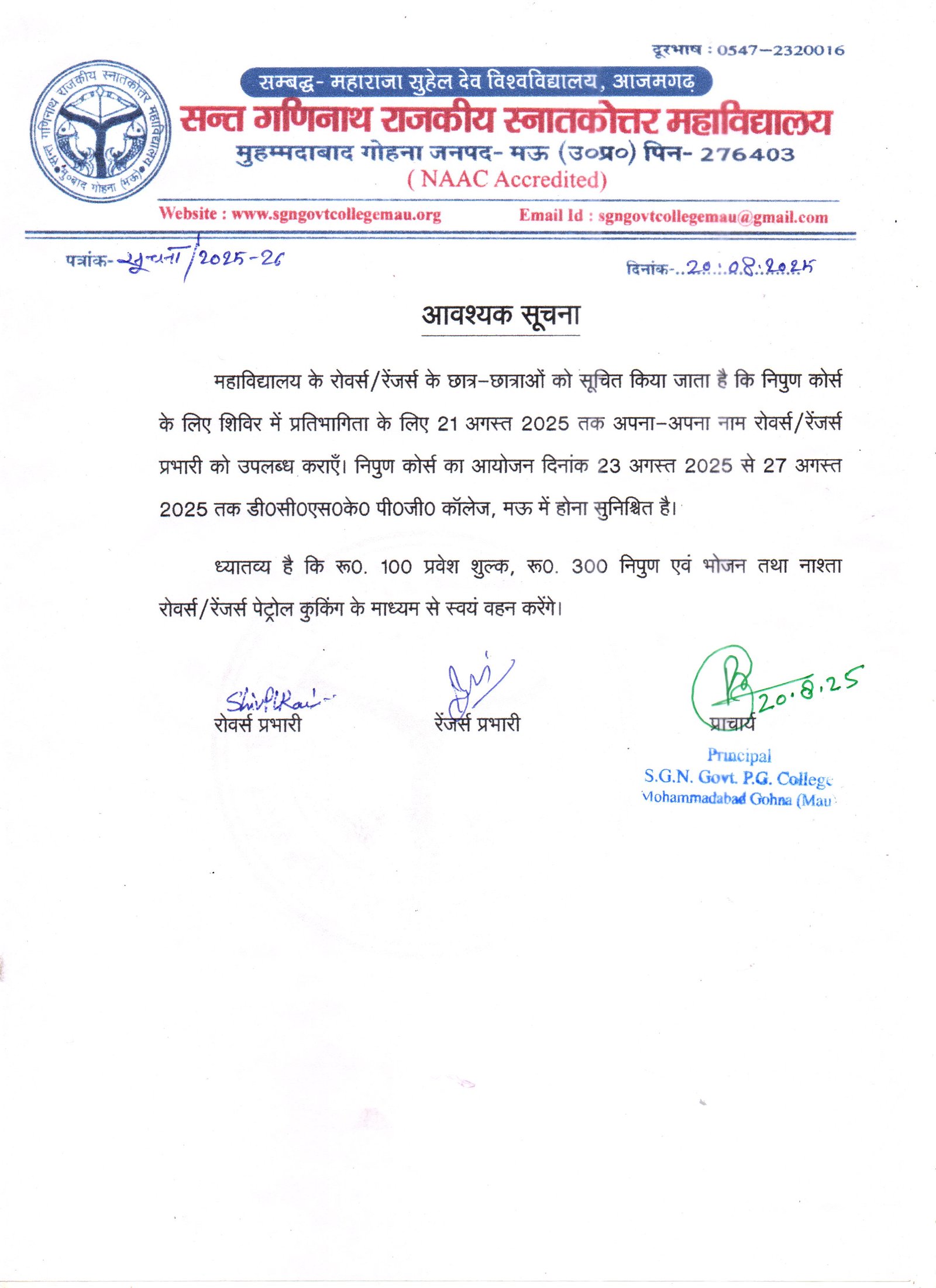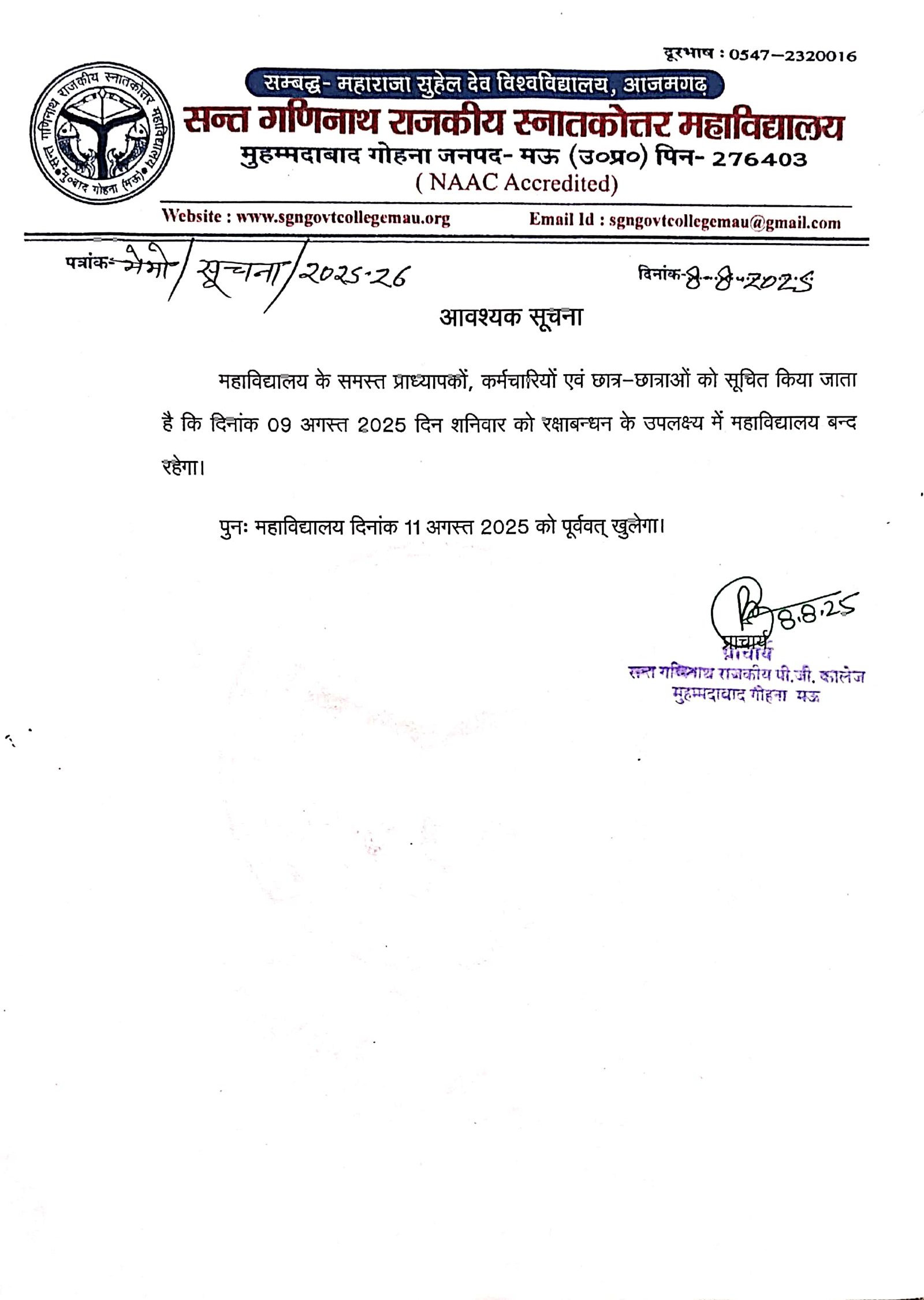 उत्तर प्रदेश शासन द्वारा पूर्व के ब्रिटिशकालीन क्विंश कालेज तथा म्योर कालेज के सादृश्य आदर्श महाविद्यालय की कल्पना को मूर्त स्वरूप प्रदान करने के लिए इस राजकीय महाविद्यालय की स्थापना की गई | इस महाविद्यालय की स्थापना १९ नवंबर १९७९ में हुई | तमसा नदी के किनारे महर्षि देवल की तपोभूमि पर प्रकृति प्रेम के एवं रमणीय वातावरण में स्थित इस महाविद्यालय की स्थापना का श्रेय स्व . श्री रामनरेश यादव जी पूर्व मुख्यमंत्री उ० प्र ० शासन लखनऊ की असीम विद्यानुराग एवं शैक्षिक मनोवृत्त तथा स्व . श्री राजाराम गुप्त पूर्व अध्यक्ष नगर पंचायत मुहम्मदाबाद गोहना मऊ को जाता है |...Read more