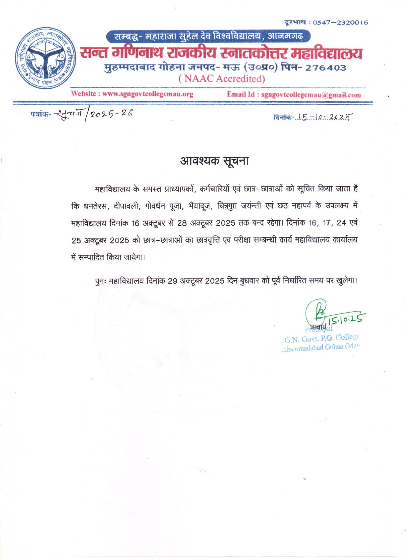 उत्तर प्रदेश शासन द्वारा पूर्व के ब्रिटिशकालीन क्विंश कालेज तथा म्योर कालेज के सादृश्य आदर्श महाविद्यालय की कल्पना को मूर्त स्वरूप प्रदान करने के लिए इस राजकीय महाविद्यालय की स्थापना की गई | इस महाविद्यालय की स्थापना १९ नवंबर १९७९ में हुई | तमसा नदी के किनारे महर्षि देवल की तपोभूमि पर प्रकृति प्रेम के एवं रमणीय वातावरण में स्थित इस महाविद्यालय की स्थापना का श्रेय स्व . श्री रामनरेश यादव जी पूर्व मुख्यमंत्री उ० प्र ० शासन लखनऊ की असीम विद्यानुराग एवं शैक्षिक मनोवृत्त तथा स्व . श्री राजाराम गुप्त पूर्व अध्यक्ष नगर पंचायत मुहम्मदाबाद गोहना मऊ को जाता है |...Read more